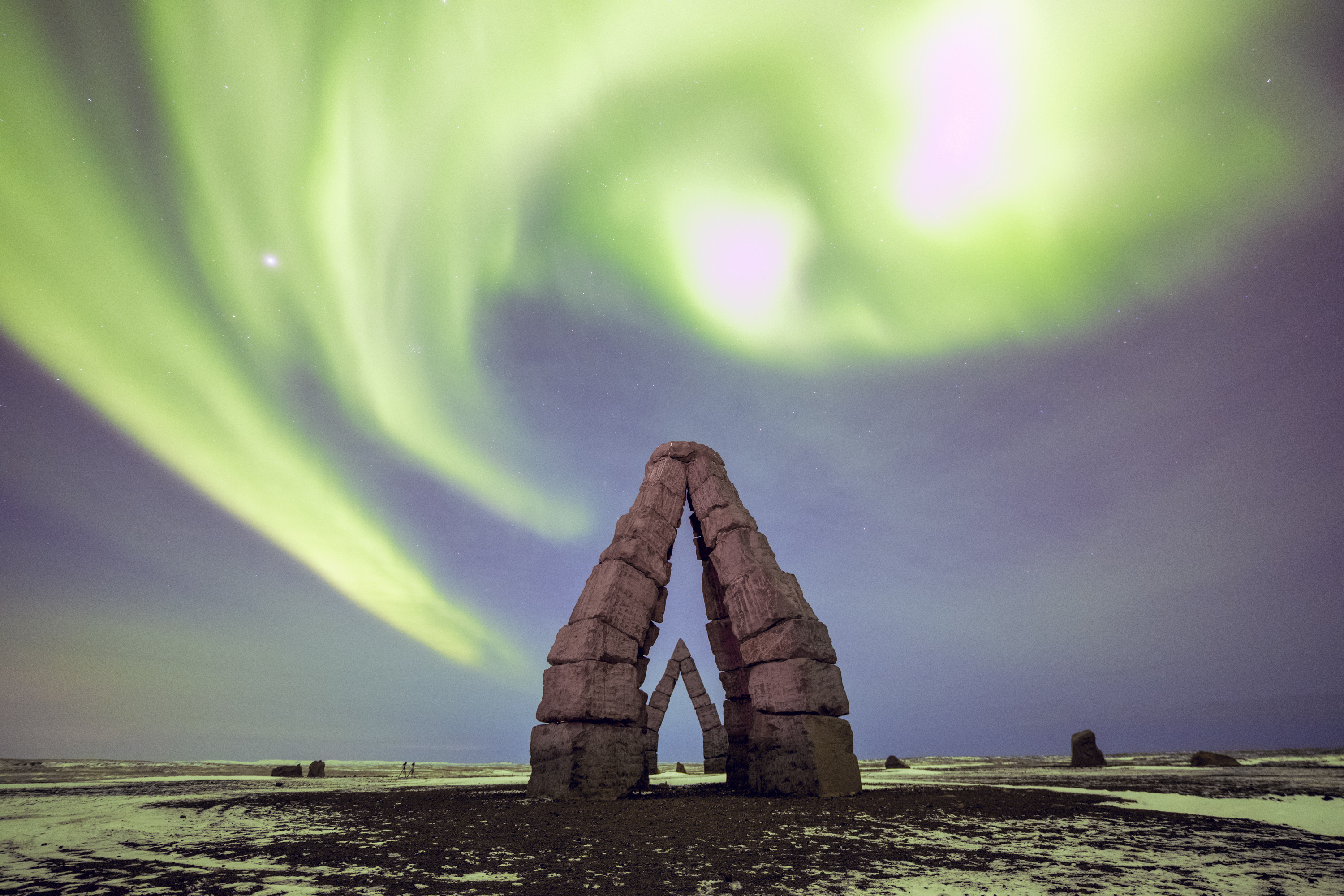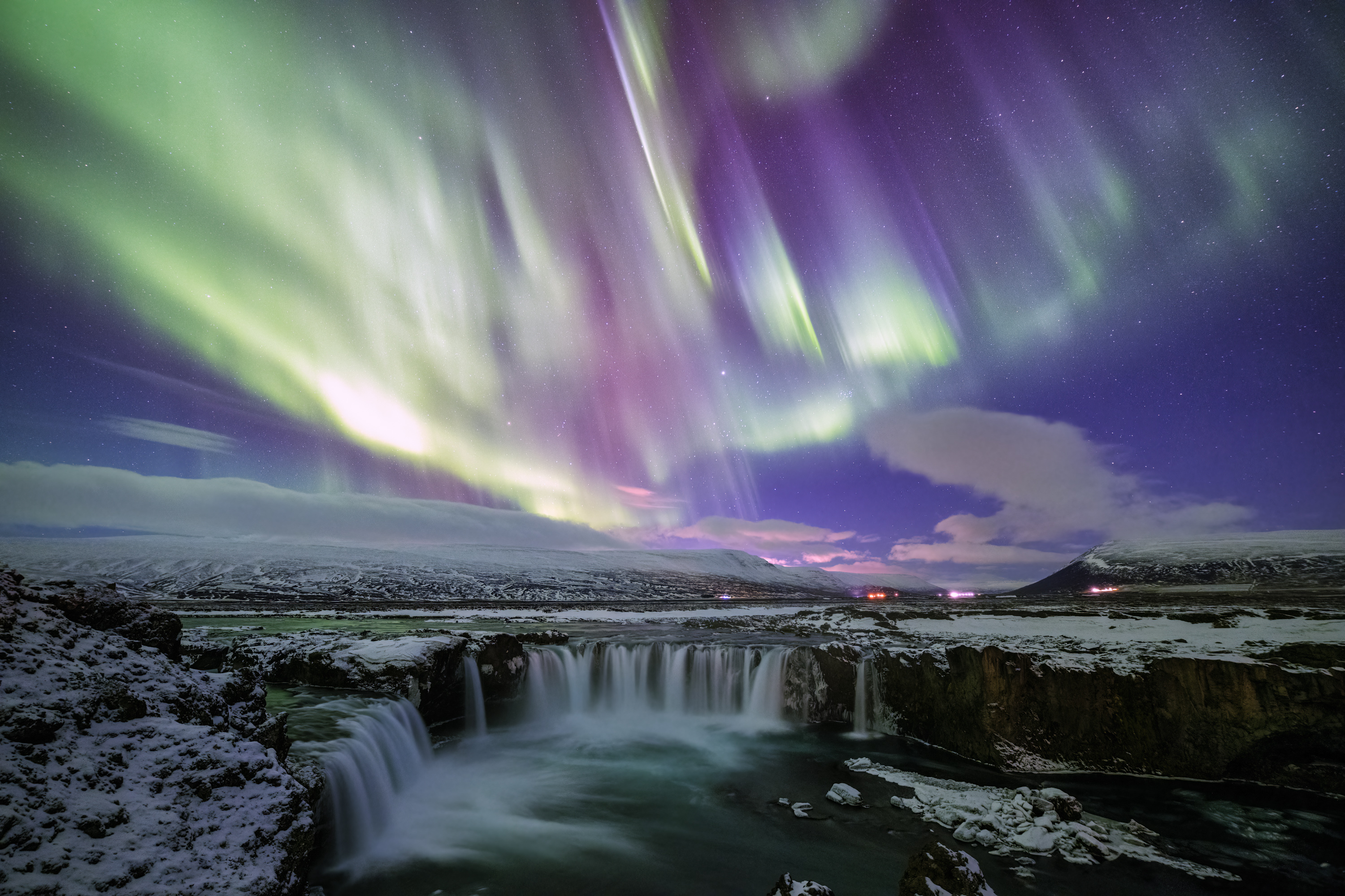 “11月初去,正好碰到冰岛暴雪,海岛天气变化也快,成片效果也不一样。”连续三年,北极圈的风光总有不同,许晓平说,每次拍摄都有惊喜。他还记得今年年初去冰岛拍摄的经历,“第一晚,我们在诸神山瀑布拍摄了一晚上,第二晚前往另外一个点位,却碰上了大雪。我们小心翼翼终于把车开到了终点,结果没过多久,极光就如期而至,当时觉得特别幸运。”