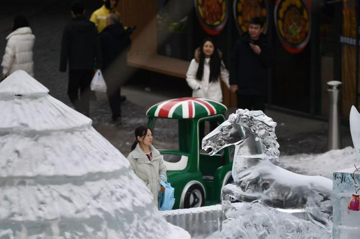 现场包含卡通形象、冰雪粮仓等主题作品,每座冰雕均经过零下10℃低温加固处理,可稳定展出至2月。