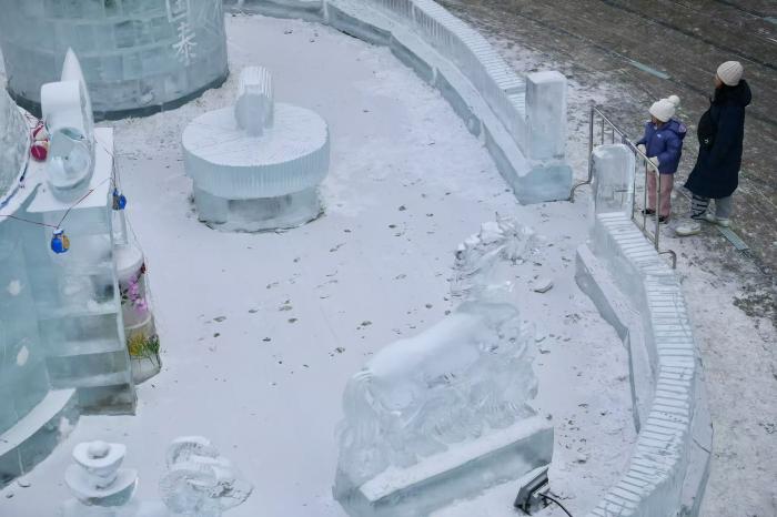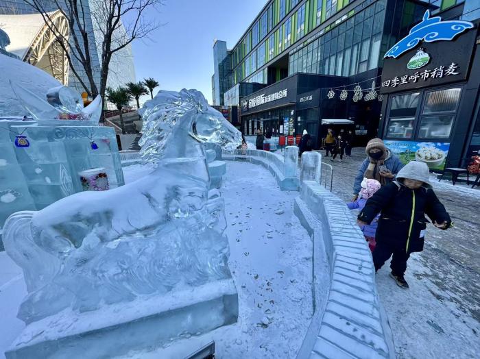据介绍,本次冰雪嘉年华包含冰雕展、冰上滑梯等项目,其中冰雕展区占地超200平方米,由专业团队用30余吨冰块雕刻而成。